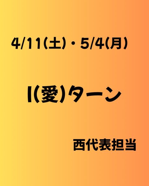 I(愛)ターン 4/11(土)・5/4(月)